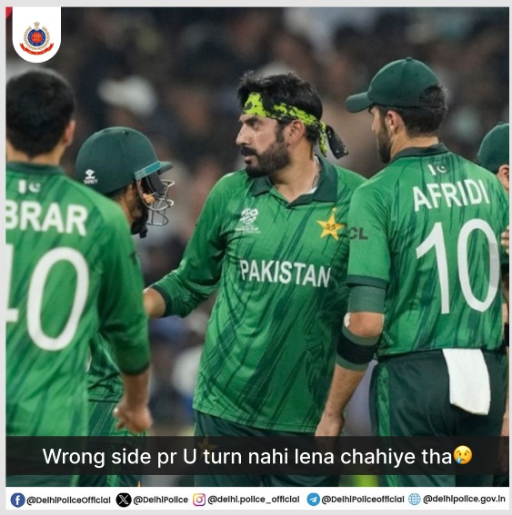 On their social media handle, a picture of the Pakistani side, Delhi Police wrote, “Galat jagah U-turn loge to yuhin muh ki khaoge (If you take a U-turn at the wrong place, you'll just keep getting slapped in the face like this).” The hilarious jab has captivated hearts as fans can’t stop laughing at that humorous jab at their arch-rivals.