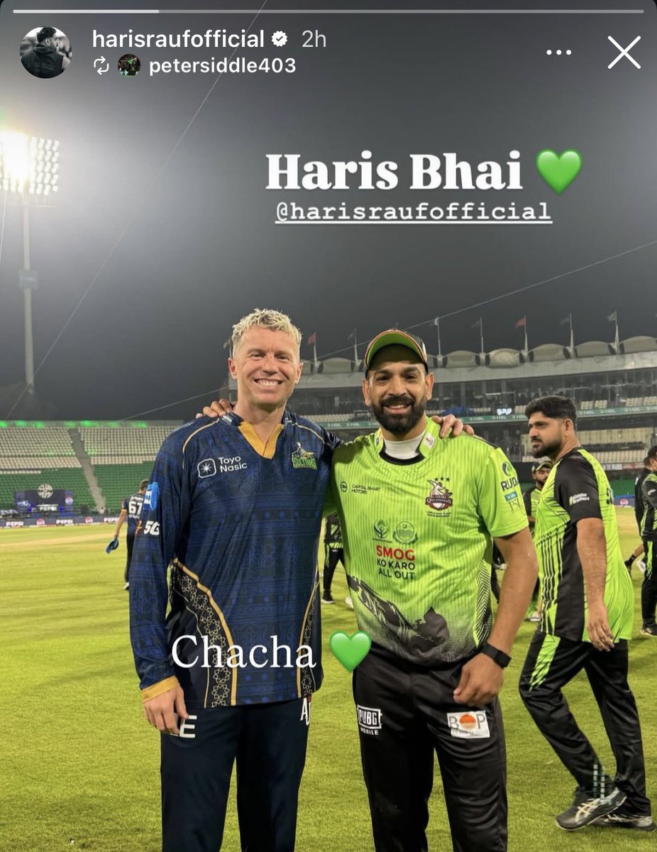 Lahore Qalandars fast bowler Haris Rauf teased Multan Sultans pacer Peter Siddle by calling him a 'Chacha'. His Instagram story from the post-match went viral on social media.