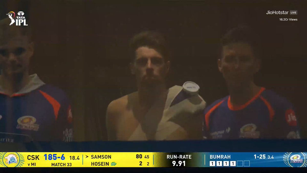 Whether Mitchell Santner will return soon remains uncertain. As the Chennai Super Kings' innings nears its end, the Mumbai Indians star is yet to come out of the dugout, where he has been seen applying ice packs and taking medication as advised by the physios. Hence, Santner’s return to bowl in the MI vs CSK clash now appears unlikely.