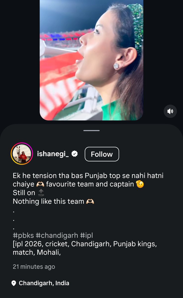 Meanwhile, Isha Negi recently attended the Punjab Kings vs Rajasthan Royals IPL 2026 game at the Mullanpur Stadium in Chandigarh. She was seen supporting PBKS and even called Shreyas Iyer her ‘favourite captain.’