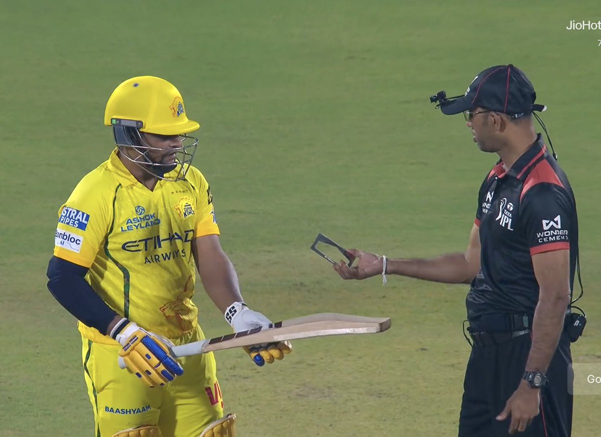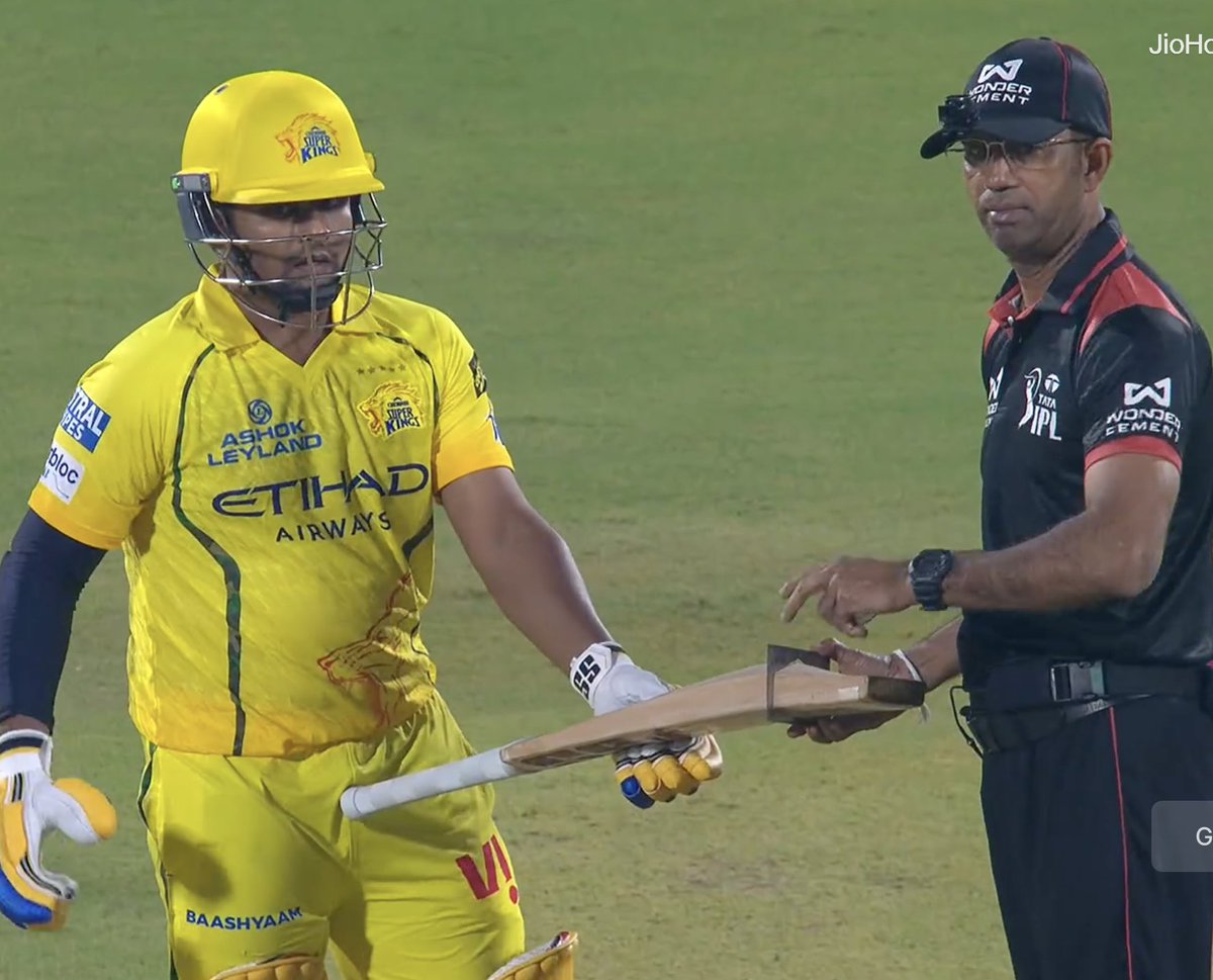 Sarfaraz Khan walks out with an illegal bat on CSK debut