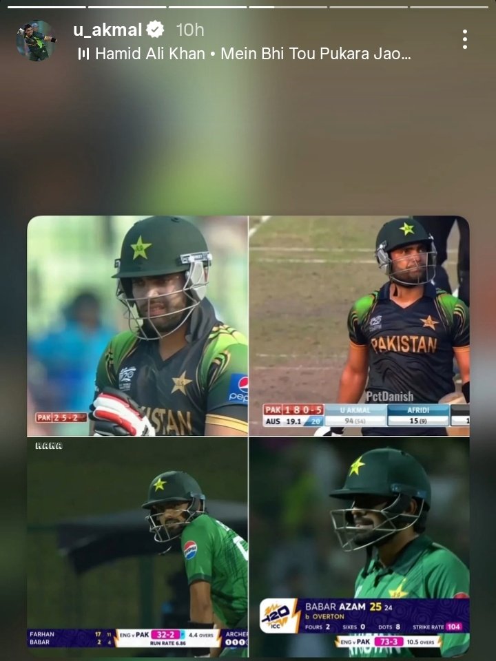 Taking to his Instagram story, Umar shared a picture, displaying his 94-run knock against Australia in the T20 World Cup 2014 in Bangladesh. For the unversed, it was the 16th game of the 2014 edition, which featured Pakistan taking on Australia.
