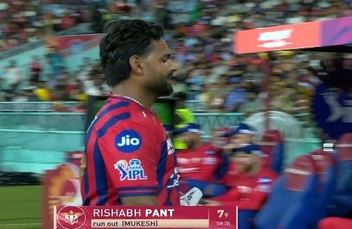 Pant was out of his crease and the ball hit Mukesh Kumar's hand and went onto dislodge the bails at the non-strikers end. It was an unlucky dismissal but Pant was furious and returned to the pavilion after scoring 7 (9).