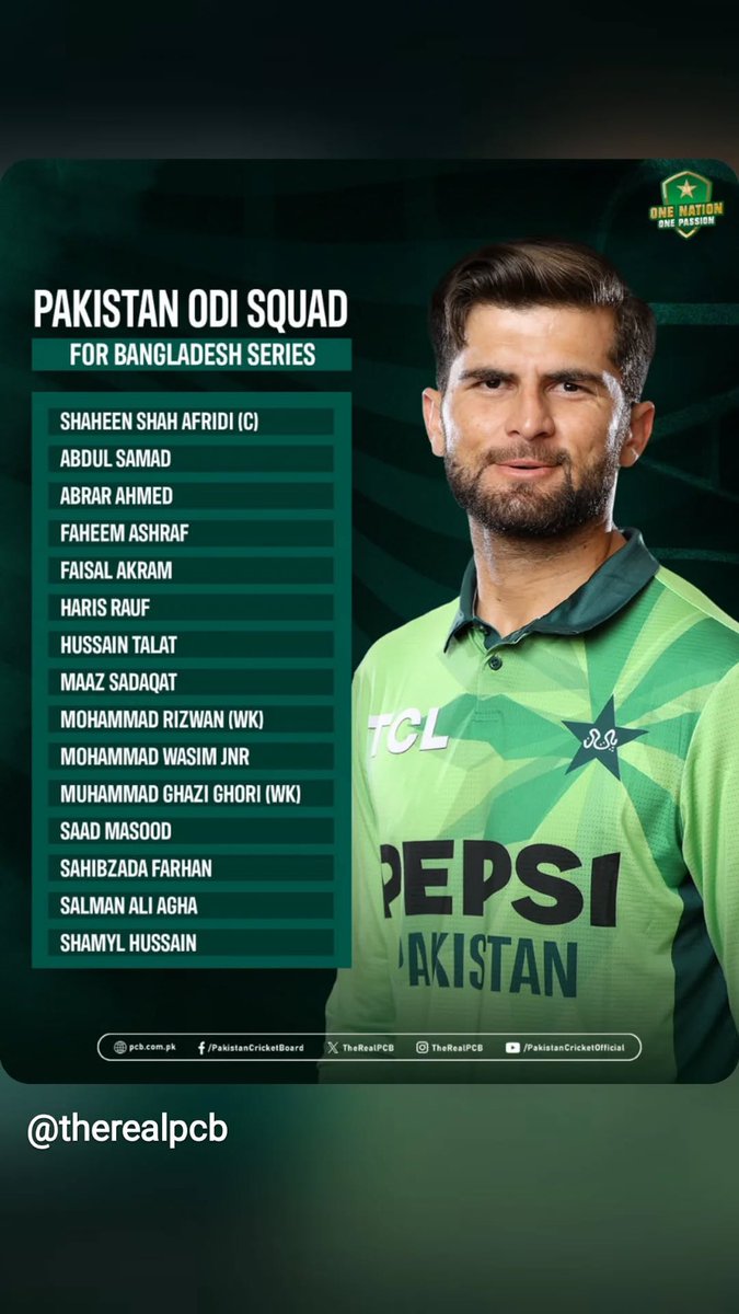 Major Exclusions: Babar azam, Fakhar Zaman, Haseebullah, Hasan Nawaz, Mohammad Nawaz, Saim Ayub, Naseem Shah