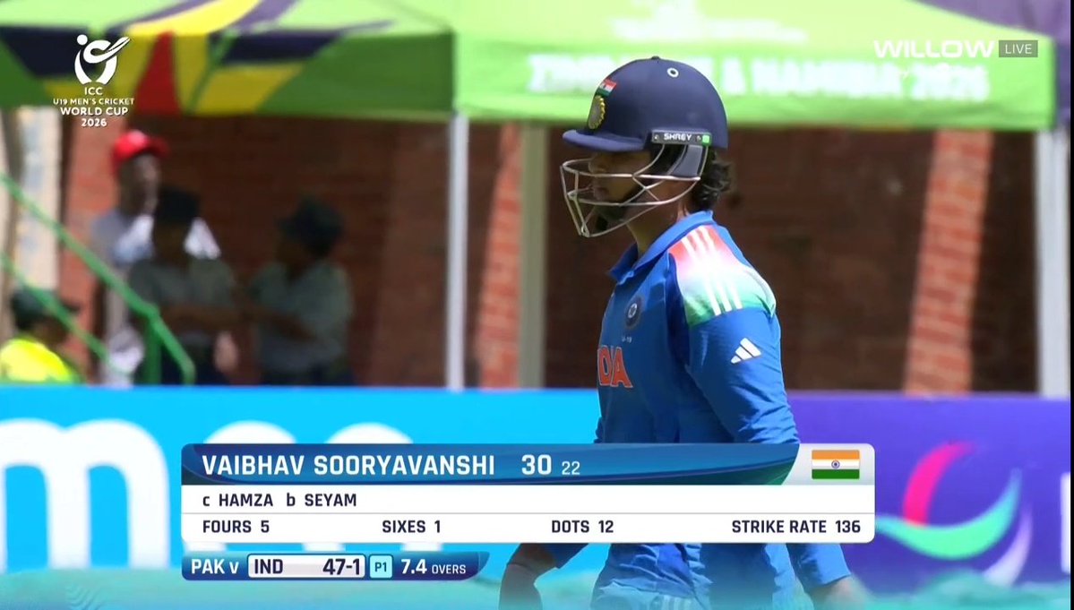 India U19 batted first in Bulawayo and raced to 47-0 around 7.3 overs, largely owing to early boundary barrage from Vaibhav Suryavanshi. However, the attacking opener gifted away his wicket to Mohammad Sayyam, which was followed by two more wickets in quick succession, that of opening partner Aaron George and skipper Ayush Mhatre.