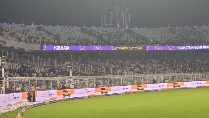 Stadium chairs and galleries were empty as cameras panned across the venue during the live match. Known for packed stands, Eden Gardens had multiple sections empty.