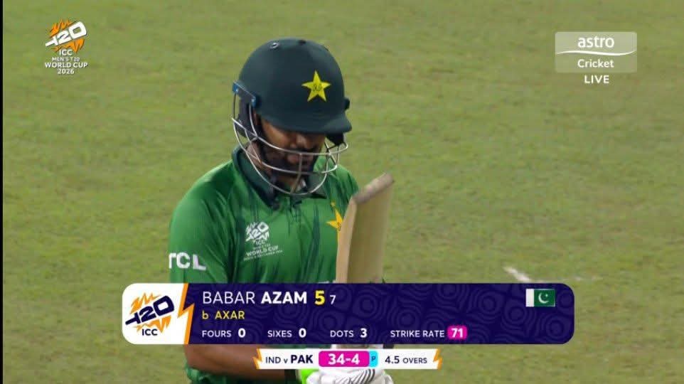 The India vs Pakistan T20 World Cup 2026 clash was a nail-biting affair while India were batting first. The match at R. Premadasa Stadium in Colombo saw the Men in Blue bat first and put up a total of 175 on the board. However, during Pakistan's chase, the man given the responsibility to anchor after the early scare, Babar Azam, left the field with a low score of five runs from seven deliveries.