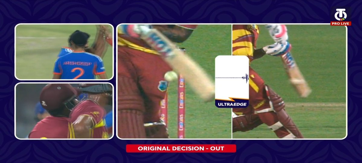 Bumrah was immediately confident in his appeal, and umpire Chris Gaffaney raised the finger. Shimron Hetmyer opted for a review, as there appeared to be some doubt initially.