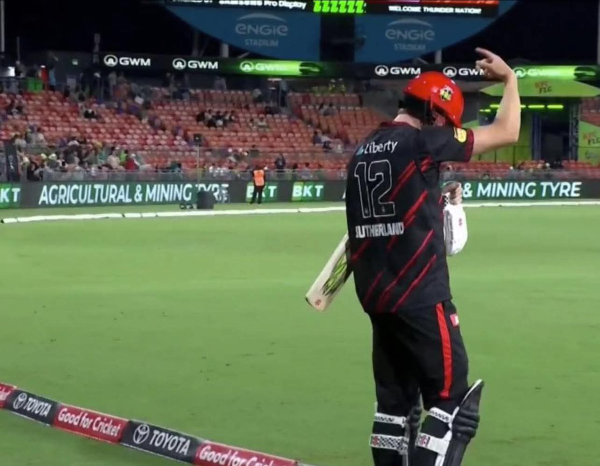 In the 18th over, Rizwan, who came in to bat at number four, was retired out. However, Will Sutherland failed to convert the tactical swap into a big finish, as he was run out by Daniel Sams in the same over.